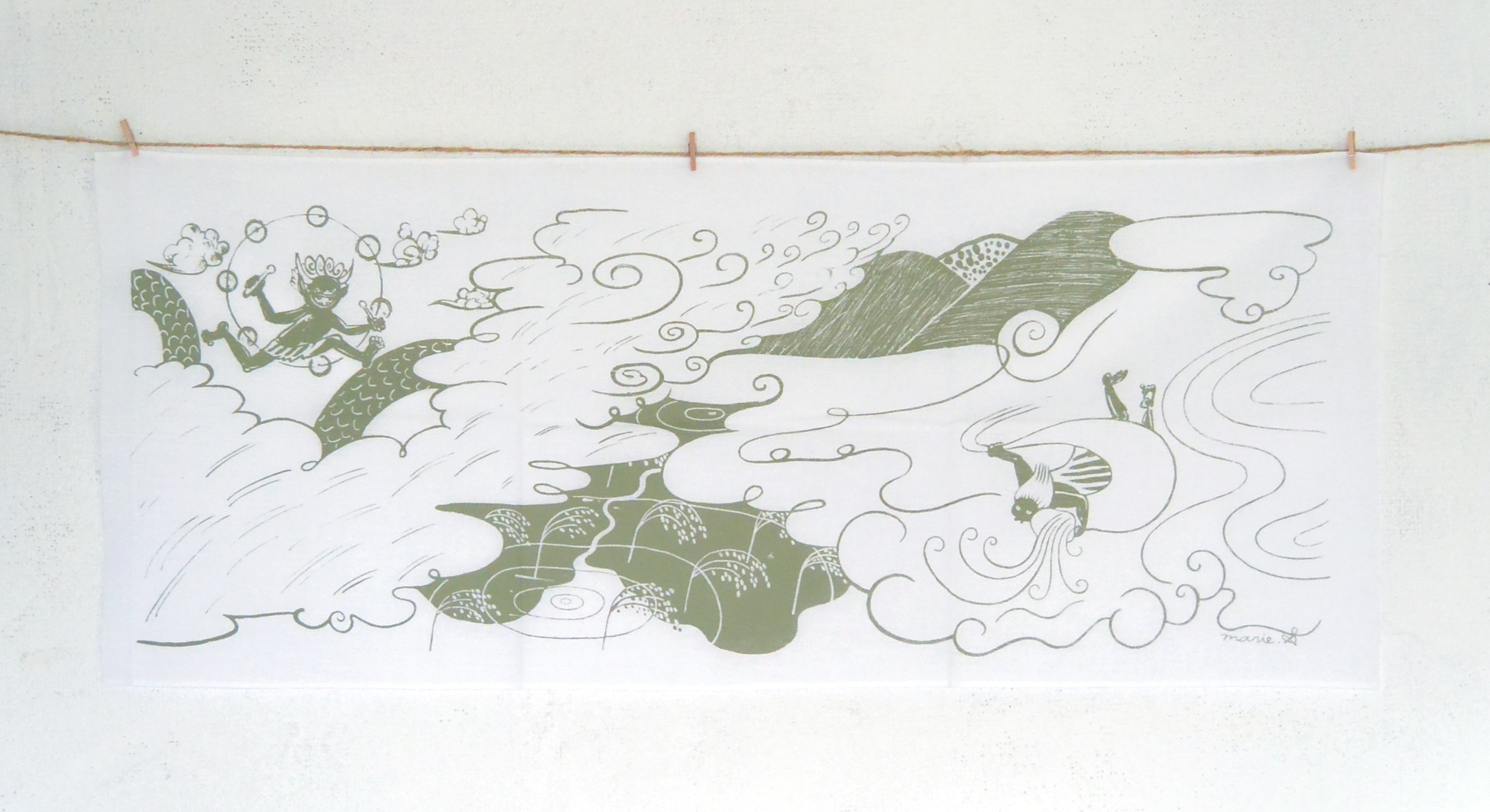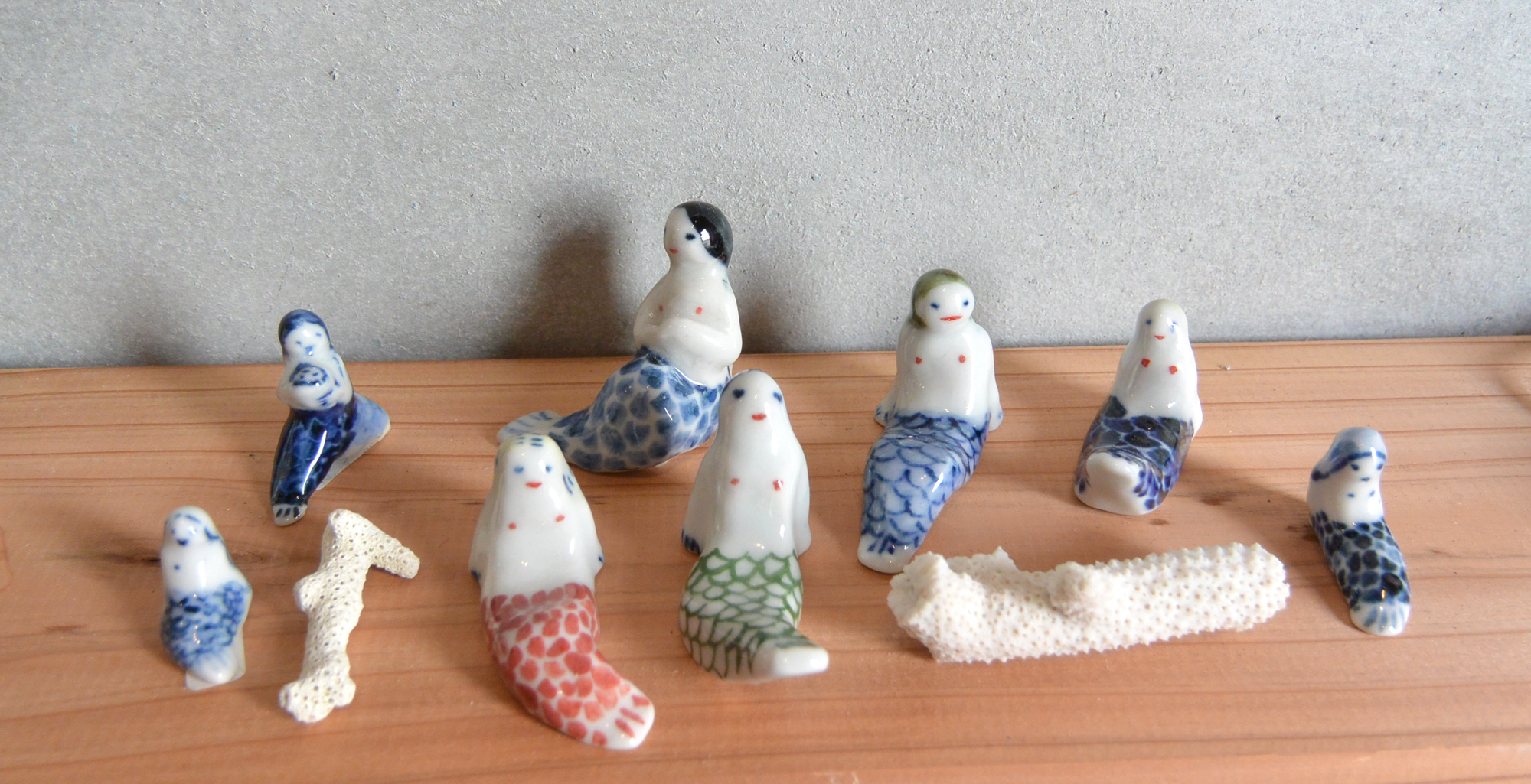 雑貨 シルクスクリーン てぬぐいやTシャツ、手提げバックなどにプリントしています。 『風神雷神』 『カッパと天狗、竜と桃の花』 「ネムノキTシャツ」 「ネムノキエコバック」 砥部焼 置物やブローチ、ヘアゴムなどを制作しています。 「ブローチ」「置物」 「人魚(箸置きになるものもあります。)」 PR