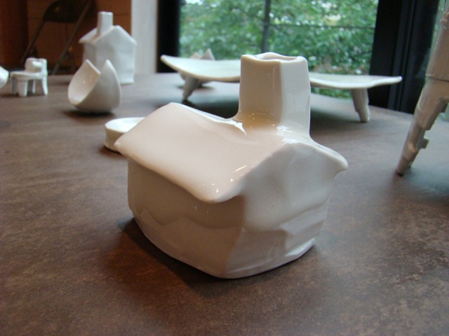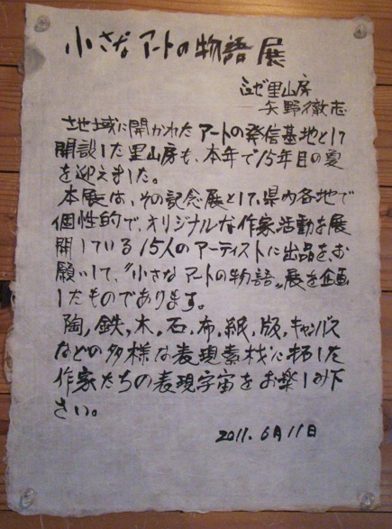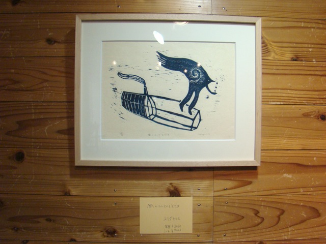 確かに Diary 2011年06月20日 週末に愛媛へ帰り、イラストレーターのCHACOちゃんと一緒に坪内家に行ってきました。 雨がぽつぽつ。 坪内家って立派な日本建築なのに、おばあちゃん家に来たみたいな感覚でくつろげます。 全体の展示の配置を考え色んな部屋を見て回っていると、坪内家を管理している日野健三先生と坪内家の一部を版画のアトリエとして使っている森本泰二郎先生がやってきて、 「おふたりさんや、"けんぞうおじさんのピザハウス"のロゴに使う似顔絵を描いてくれんかね。」 と言いました。 そうです。 なんと坪内家には最近、敷地内にピザ釜が作られたのです。 レンガから手作りの立派なピザ釜。夏までにはきっとけんぞうおじさんの似顔絵が目印のピザ屋さんが坪内家の名物の一つになる事でしょう。 それにしてもこの和風な場所にピザ釜をつくろうだなんておもしろいおじさんたちだ。きっとこういうことができちゃうところが坪内家のみそなのである。 それから少し先生達と将来の話をしながらお茶をしました。 帰る途中、森本先生が出展されていると聞いたので砥部のミュゼ里山房によりました。 「小さなアートの物語展」です。 いくつか気に入った作品をご紹介・・・ ゆがみが心地よい。浜辺で拾った貝殻のような色です。 工藤冬里さんの作品。 俳人の山頭火の句を表現したもの。後ろ姿がほっこり。 一色昇二さんの作品。 前々から何点か見た事があり気になってたスミダヒロミさんの版画作品。とっても不思議な。 とけそうだとおもってしまう白です。遠藤裕人さんの作品。 このつぼをみればみるほどに、すいこまれそうな。 宮内太志さんの作品。 坪内家敷地内に森本先生と同じくアトリエを構えている通称"つよにい"こと西山毅さんの作品。 なんと変てこで愛しい住人たち。 そして森本泰二郎先生の作品です。 自然や生き物、モチーフは凄く変わったものではないのに新鮮な感じがします。色だろうか、目が喜ぶ。 会場にあったどの作品も心のこもったものばかりで身近だけど遠くまで連れて行ってくれるようなものがたくさんありました。 大学に入るまでじっくり作品を見に行く事をしなかったので、地元でこんな作品を作っている人たちがいることをしらなかったのです。うむむむ、楽しい。 じつは里山房にも初めていきました。 自然光の入るとてもいいギャラリーでした。